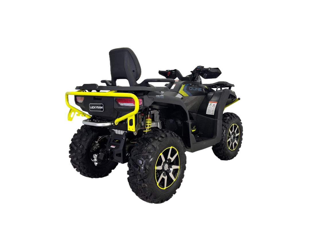 శక్తివంతమైన ఇంజిన్-అధిక-పనితీరు గల 900 సిసి 4-స్ట్రోక్ ఇంజిన్, ఆఫ్-రోడ్ అడ్వెంచర్స్ కోసం బలమైన టార్క్ మరియు త్వరణాన్ని అందిస్తుంది. రోబస్ట్ సస్పెన్షన్-స్వతంత్ర లేదా దీర్ఘ-ప్రయాణ సస్పెన్షన్ వ్యవస్థలను కలిగి ఉంది, కఠినమైన భూభాగాలపై మృదువైన సవారీలను కలిగిస్తుంది. డ్యూరబుల్ బిల్డ్-హెవీ-డ్యూటీ స్టీల్ ఫ్రేమ్ మరియు రీన్ఫోర్స్డ్ చట్రం మరియు రీన్ఫోర్స్డ్ చట్రం. మట్టి, ఇసుక మరియు రాతి కాలిబాటలలో ట్రాక్షన్. హై-కెపాసిటీ లోడ్ & వెళ్ళుట-బలమైన రాక్లు మరియు వెళ్ళుట హిచ్తో రూపొందించబడింది, పని లేదా వినోదం కోసం భారీ లోడ్లను లాగగల సామర్థ్యం. హైడ్రాలిక్ డిస్క్ బ్రేక్లు (ఫ్రంట్ & రియర్) అధిక వేగంతో కూడా శీఘ్రంగా, సురక్షితమైన స్టాప్లను నిర్ధారించండి. గేర్.సెర్చ్ & రెస్క్యూ - అత్యవసర మిషన్ల కోసం రిమోట్ లేదా కష్టమైన భూభాగంలో నమ్మదగిన పనితీరు.